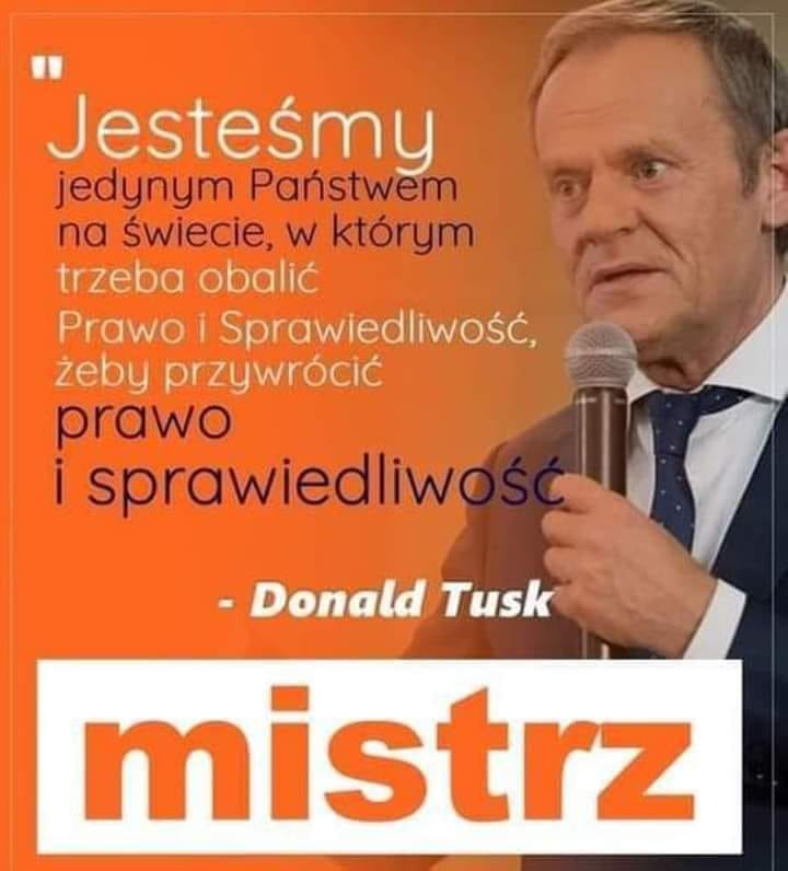 W zasadzie każdy racjonalnie myślący człowiek wie, choć nie każdy potrafi tak lapidarnie to wyrazić jak Donald Tusk na załączonym obrazku, że zmiana władzy w Polsce jest możliwa wyłącznie poprzez odsunięcie PiS od władzy, co można osiągnąć poprzez maksymalną konsolidację opozycji demokratycznej, czyli najlepiej organizując się już dzisiaj wokół jednej listy wyborczej do Sejmu i Senatu.