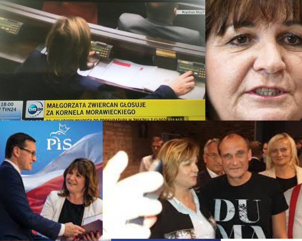 Przypadek przestępstwa „głosowania na dwie ręce” byłej posłanki KUKIZ 15 i niedoszłej posłanki PiS, Małgorzaty Zwiercan (zob. link obok: https://fakty.tvn24.pl/ogladaj-online,60/zjednoczona-prawica-ruszyl-proces-malgorzaty-zwiercan-za-glosowanie-na-dwie-rece,1082269.html ) jest dowodem bezprawia i niesprawności państwa PiS.