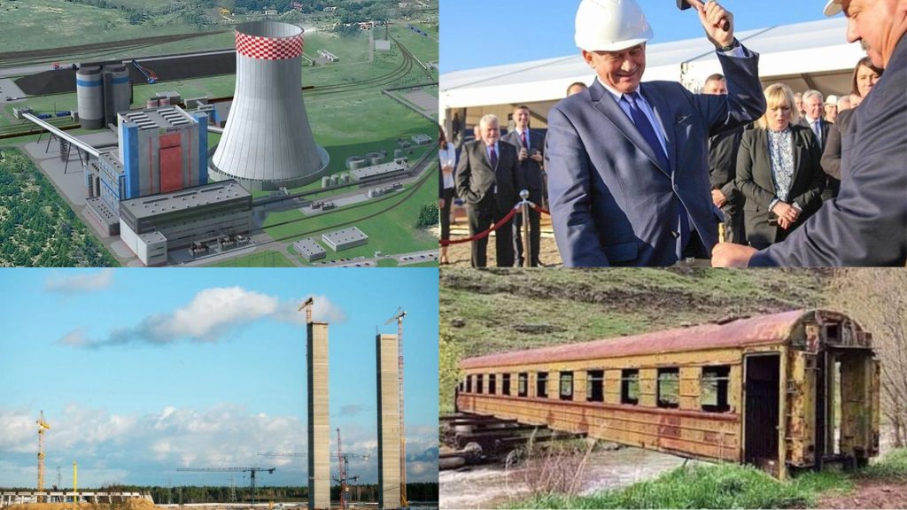 Elektrownia C w Ostrołęce miała ruszyć w 2024 r. i działać co najmniej 40 lat. W inwestycję mocno wierzyli politycy Prawa i Sprawiedliwości, w tym były minister energii Krzysztof Tchórzewski (zob. wizualizacja elektrowni – obraz 1.) Budowę rozpoczęto w grudniu 2018 r. (zob. propagandowe rozpoczęcie budowy – obraz 2.). W lutym 2020 r. budowę zawieszono, a obecnie trwają prace rozbiórkowe dwóch, wysokich na ponad sto metrów betonowych pylonów (zob. obraz 3.). Według danych na grudzień 2020 r.koszty poniesione przez udziałowców (spółki Skarbu Państwa) na realizację porzuconego bloku węglowego to 1,31 mld zł.