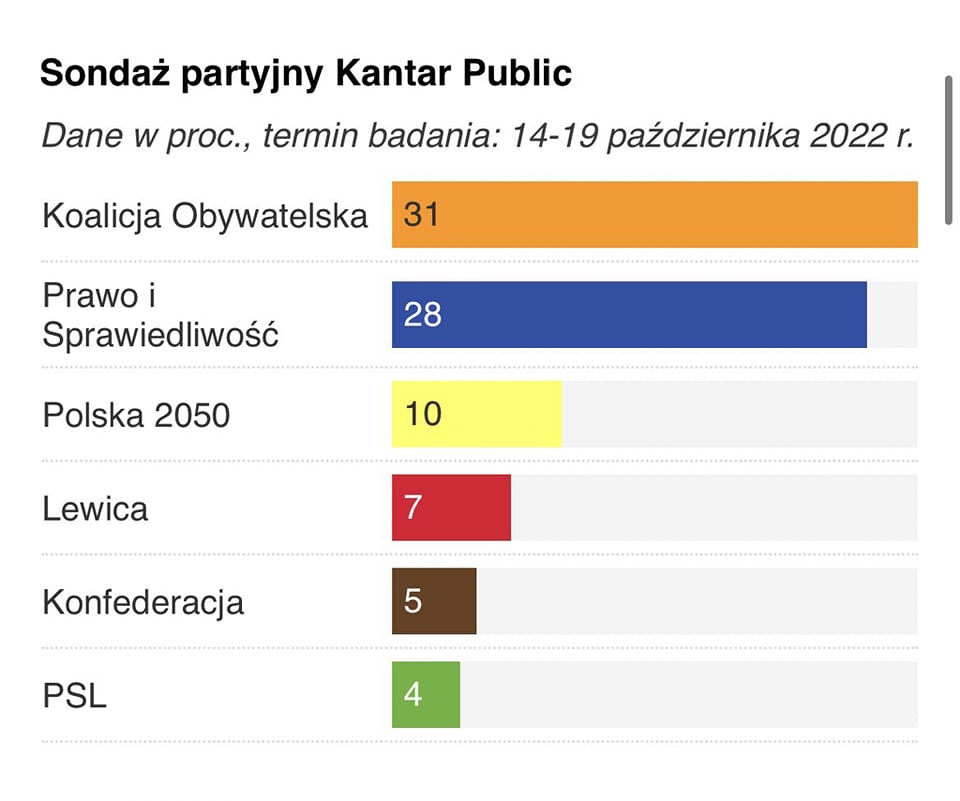 Wyniki ostatniego sondażu poparcia dla partii politycznych według badania Kantar Public mogą budzić nadzieję na przebudzenie się społeczeństwa polskiego ze swoistego letargu, który nie pozwalał wielu osobom dostrzec bezprawie, niekompetencje, korupcję polityczną, nepotyzm, marnotrawstwo pieniędzy publicznych, propagandowe kłamstwa TVP Info, stygmatyzowanie ludzi przez obwoźnego klauna, na spotkaniach ze swoimi wyznawcami i wiele innych niegodziwości, jakich dopuszczają się od 7 lat ludzie władzy w Polsce.