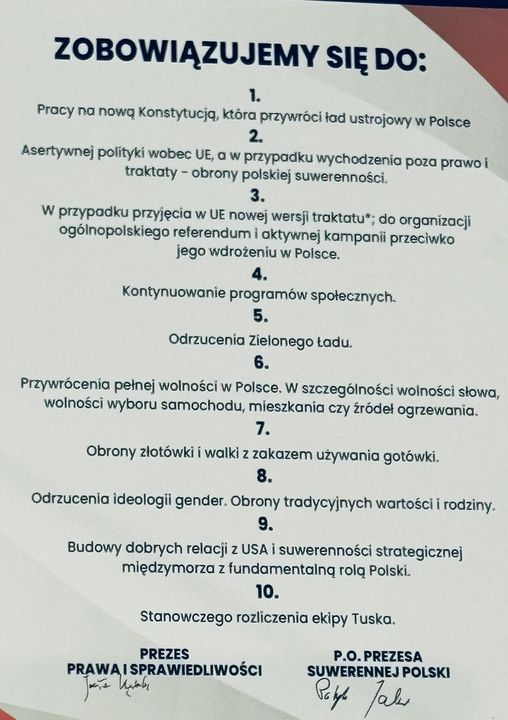 2. Asertywnej polityki wobec UE, a w przypadku wychodzenia poza prawo i traktaty – obronności polskiej suwerenności.