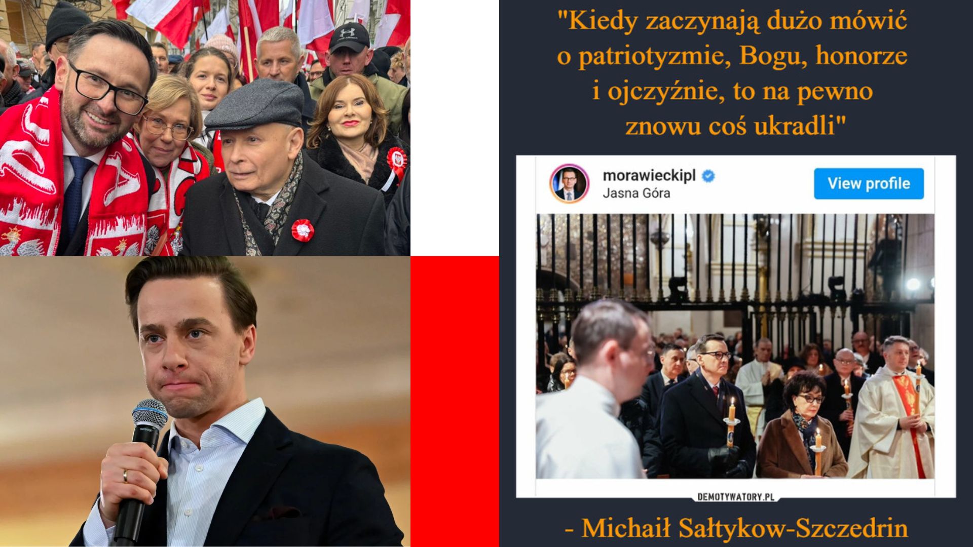 Oba te środowiska łączy, wielokrotnie wyrażana publicznie, niechęć do tych grup społecznych, które nie podzielają ich „jedynie słusznej wizji świata” oraz kompletny brak racjonalności w polityce międzynarodowej, która wyraża się w ustawicznej krytyce naszej obecności w strukturach i organizacjach państw demokratycznych. Współczesną polską prawicę jednoczy także przemożna chęć sprawowania władzy (najchętniej metodami niedemokratycznymi) i czerpania z niej całkiem przyziemnych korzyści, w myśl sentencji rosyjskiego satyryka i publicysty z XIX wieku, „Kiedy zaczynają dużo mówić o patriotyzmie, to pewnie znowu coś ukradli” (Michaił Sałtykow-Szczedrin) … lub zamierzają ukraść (dop. MP), na przykład nasze wolności i prawa obywatelskie, bezpieczeństwo (poprzez osłabienie naszych sojuszy) lub pieniądze podatników, jak to miało miejsce podczas rządów PiS (przy wsparciu Konfederacji) w latach 2015 – 2023.