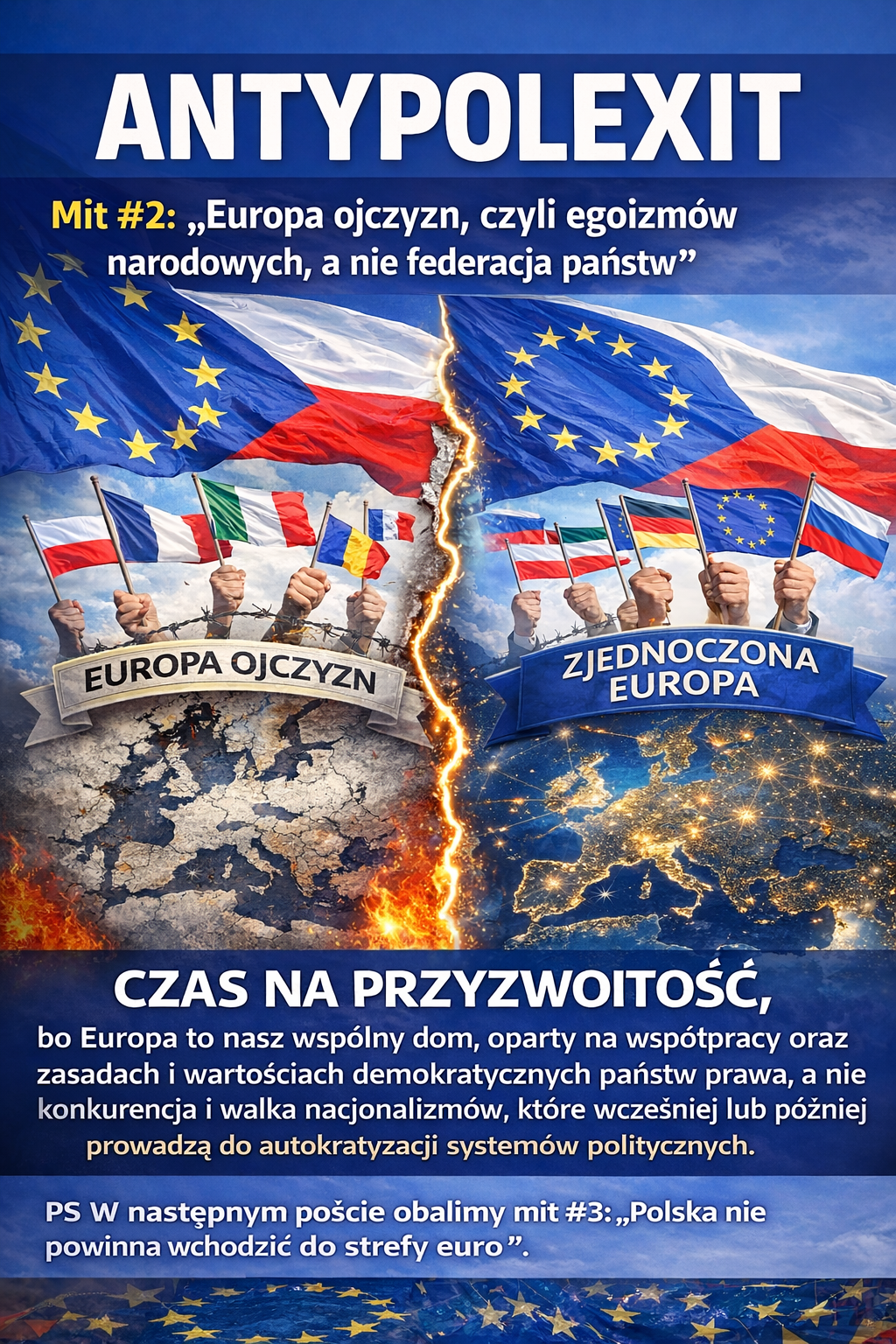 CZAS NA PRZYZWOITOŚĆ, bo Europa to nasz wspólny dom, oparty na współpracy oraz zasadach i wartościach demokratycznych państw prawa, a nie konkurencja i walka nacjonalizmów, które wcześniej lub później prowadzą do autokratyzacji systemów politycznych.