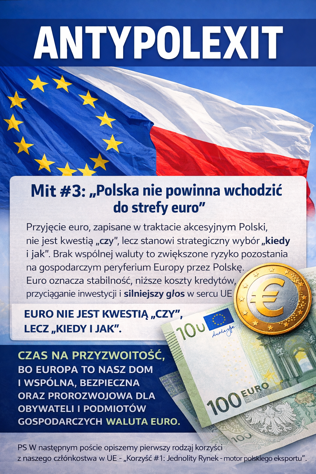 CZAS NA PRZYZWOITOŚĆ, bo Europa to nasz dom i wspólna, bezpieczna oraz prorozwojowa dla obywateli i podmiotów gospodarczych waluta Euro.