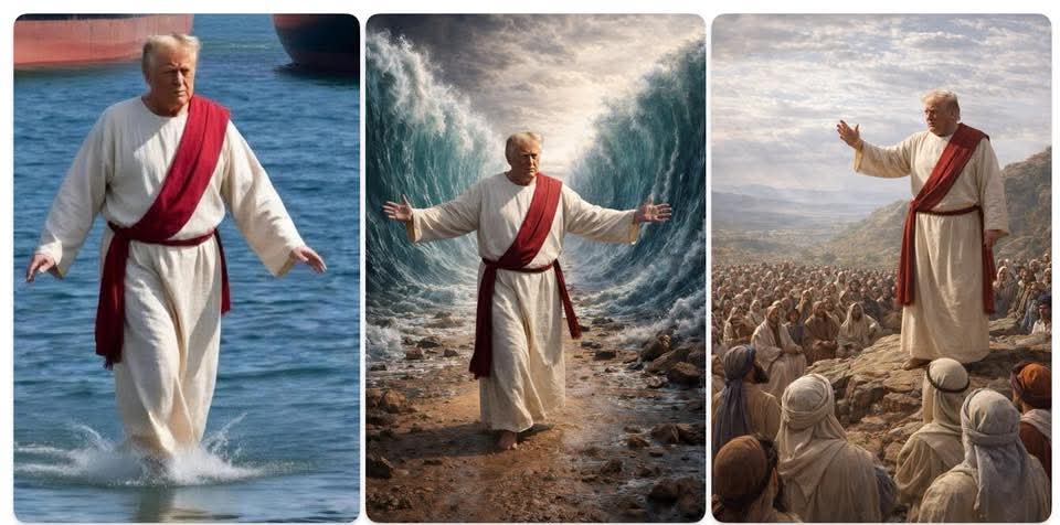 Według gorliwych wyznawców Donalda Trumpa, pomarańczowy intelektualista z Waszyngtonu coraz wyraźniej upodabnia się do postaci Jezusa Chrystusa. Jego otoczenie pieczołowicie potwierdza to licznymi wizerunkami.